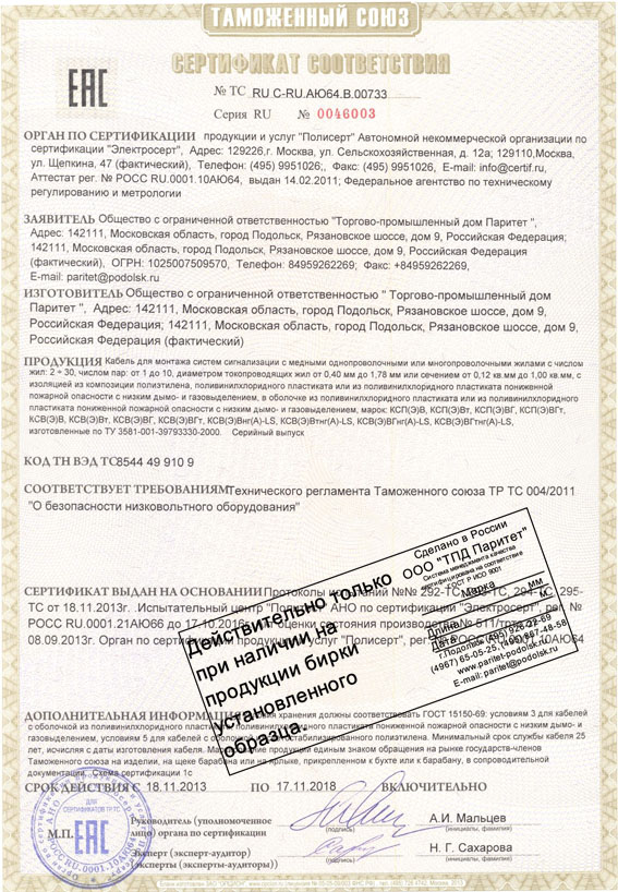 Компания "Паритет" - отечественный производитель высококачественной кабельной продукции. Более 20 лет занимается производством кабельной продукции, в частности, кабеля КСПВ для охранных сигнализаций. Компания "Паритет" является эксклюзивным правообладателем технических условий на производство кабеля КСПВ.
