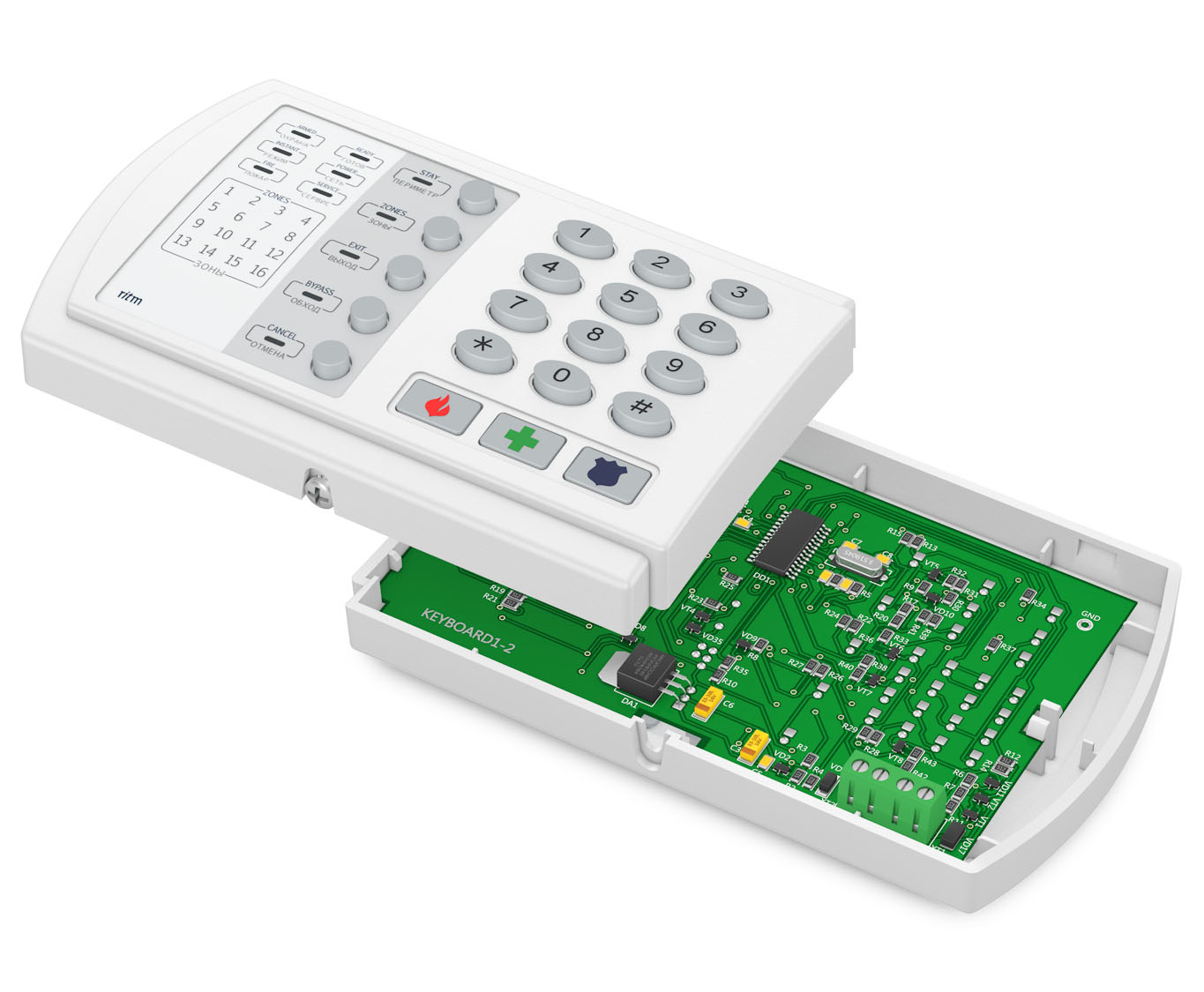 Кнопочная клавиатура со светодиодной индикацией для управления контрольными панелями «Контакт GSM-5 / 5-2 / 5-2 3G / 7 / 16». Позволяет управлять постановкой и снятием разделов охранной системы с помощью кодов пользователей, изменять коды пользователей, контролировать состояние зон и разделов охранной системы, отображать состояние системы и отправлять сигналы тревоги для вызова экстренных служб