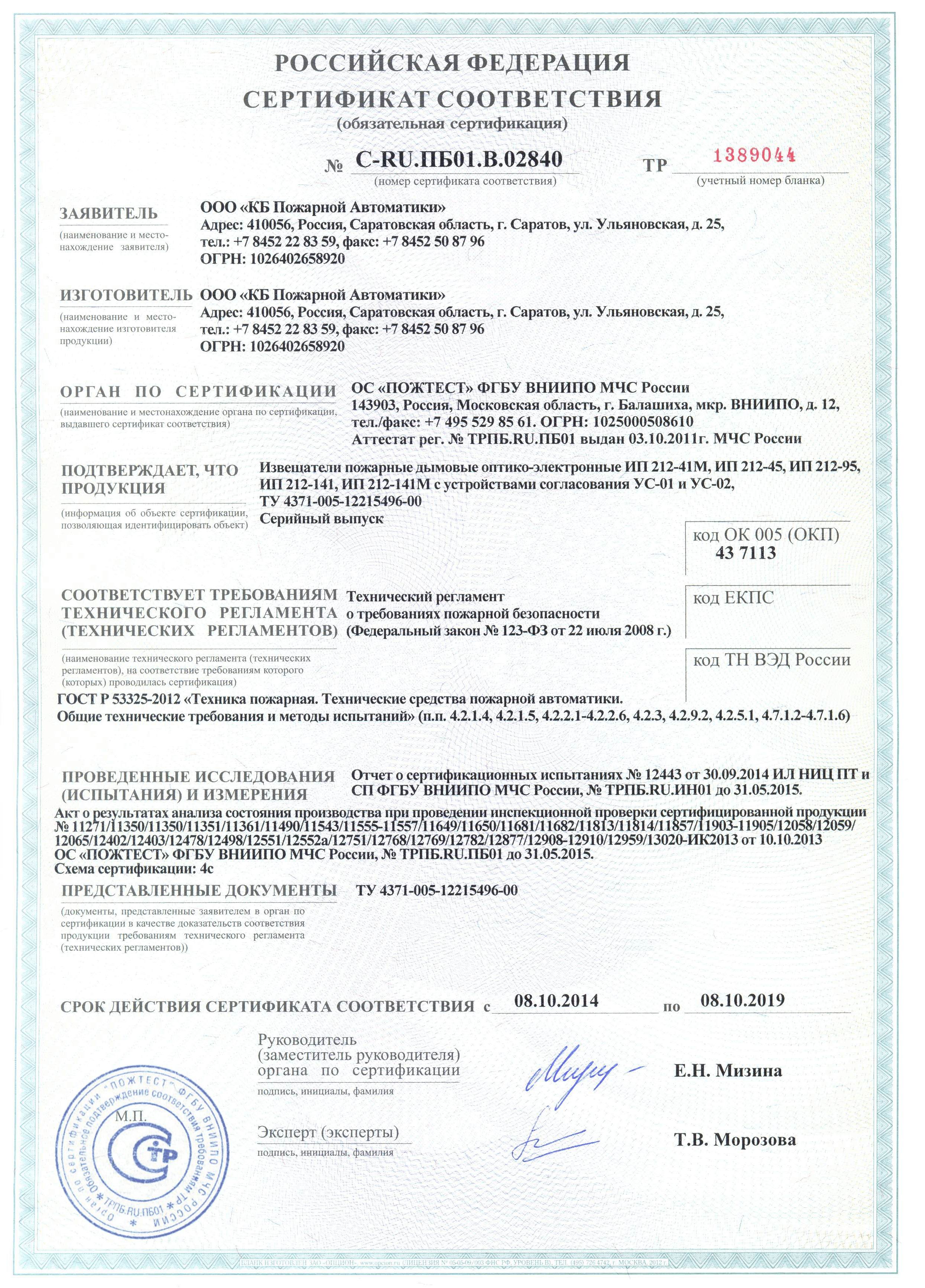 | Вес извещателя | 210 г. |